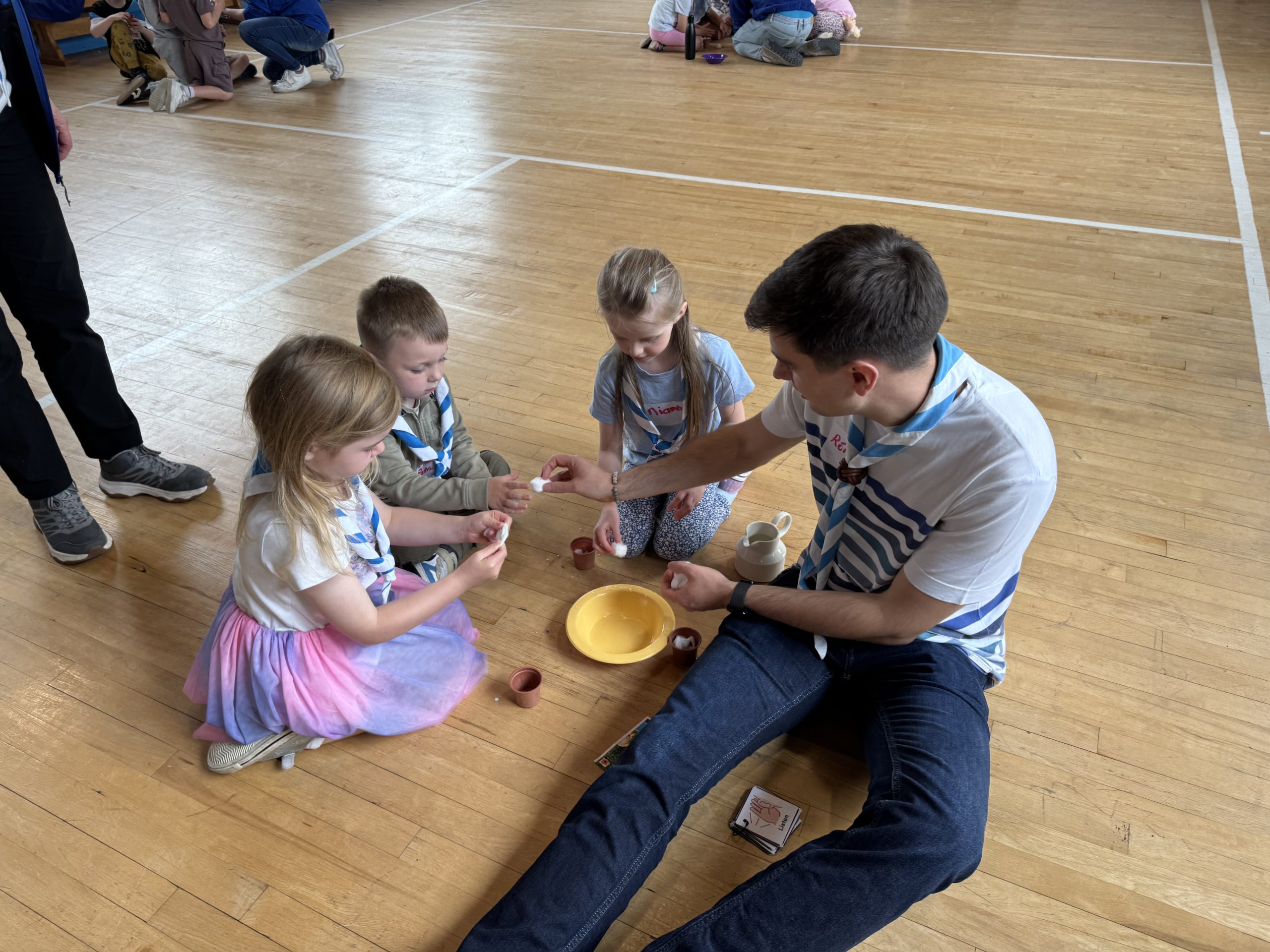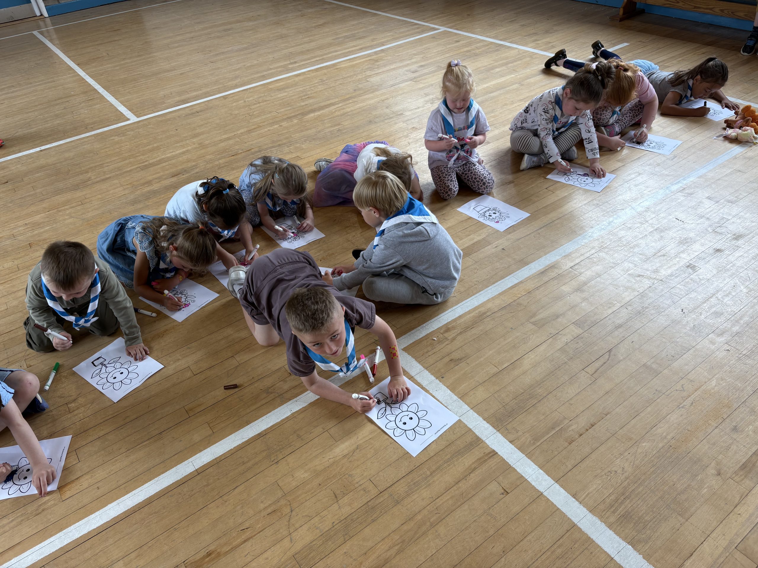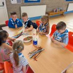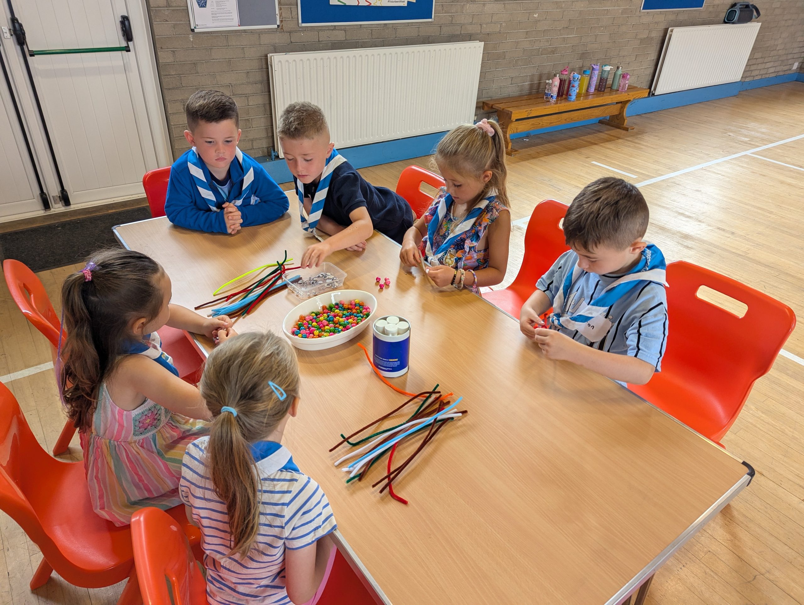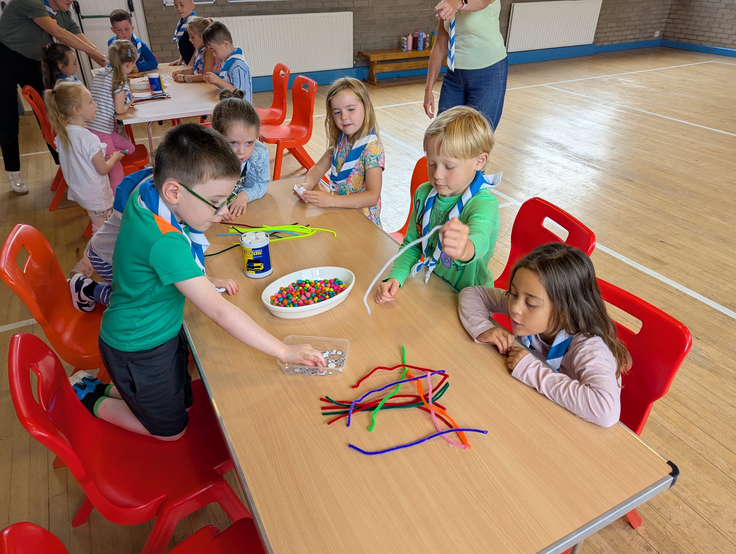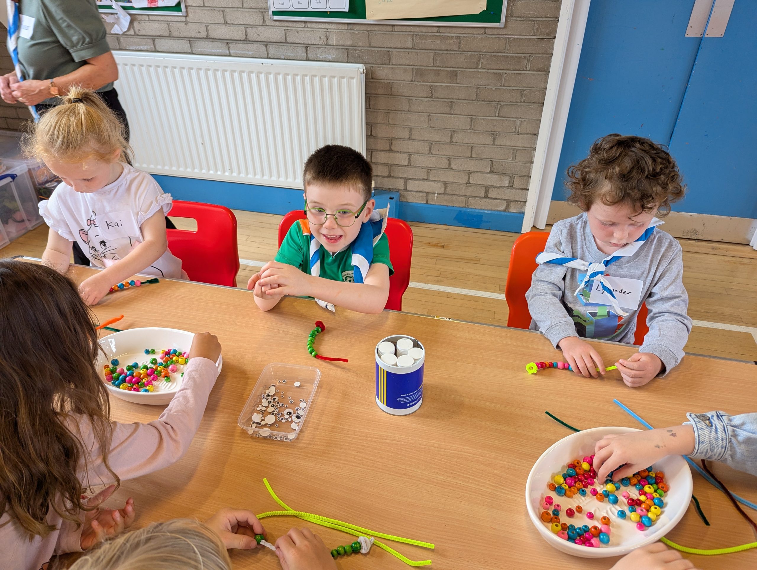 We then had our craft activity again incorporating the theme, and working in the small group system. This required the children to use their fine motor skills with varying levels of dexterity. Scouters were always on hand to offer assistance. Beading, planting seeds, sticking paper/wood. We concluded with colouring in / chat time and finally Tidy Up time.